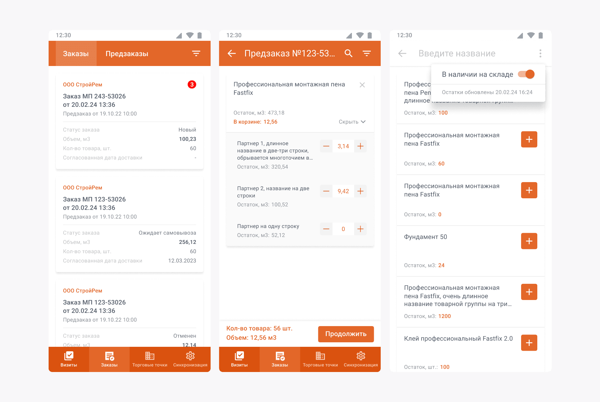 Мобильное приложение — инструмент для торговых представителей, оформляющих предзаказы в торговых точках.